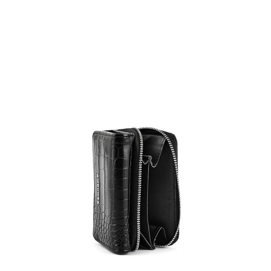 Black Croccos Small Exterior Zip Wallet