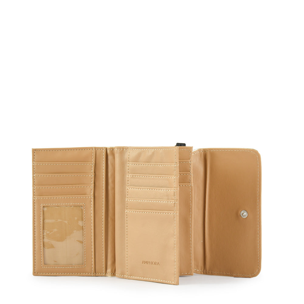 Metallique is a new accessory that comes to charge your wallet with good energy. Our medium-sized external zipper wallet has the grained PU texture you'll love. Its opening is through closure and its interior has a holder for cards, bills and documents. Its brilliant design stands out at all times. It is functional and comfortable! Love it!