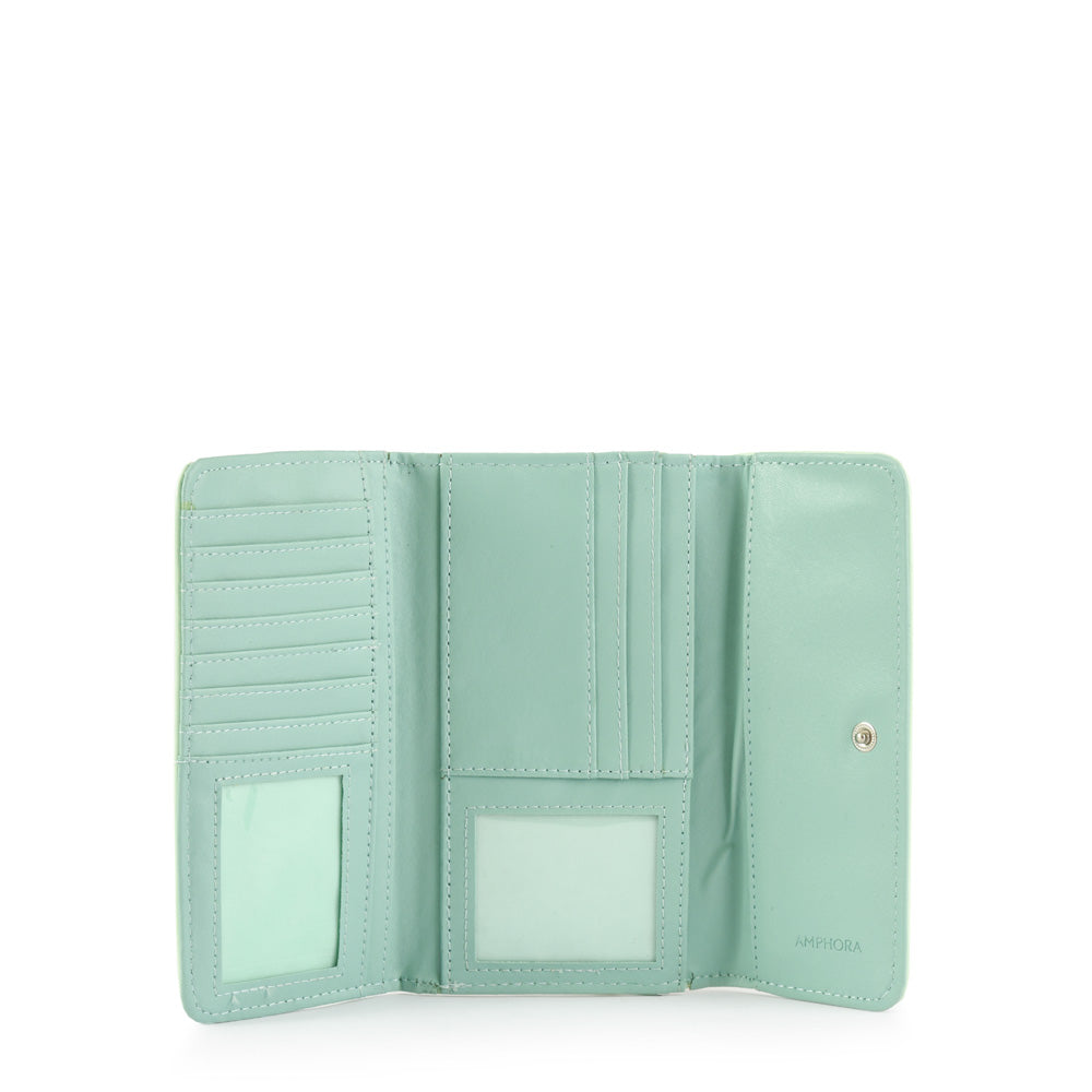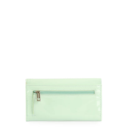 Our simple medium Crass wallet is an essential complement to your wallet. Made of patent PU, it has what you need to store your essentials. Its natural glow makes it very special. Its opening is through a snap closure and its interior has a card holder, a bill holder and a purse pocket with closure. Super functional and comfortable to organize your things. Perfect match!