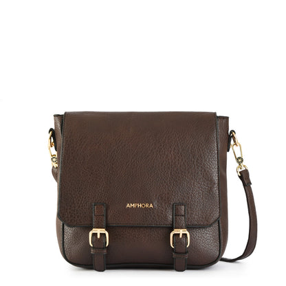 Everyday bag, Aimar is that shoulder bag that you want to have. With a sophisticated touch, this Amphora wallet is made of grained Pu and is medium in size, suitable for any occasion. It comes with two clasps in gold tones that add a detail and also provide security to the bag. It has three internal closures and one external closure on the back. Aimar is the bag that cannot be missing from your everyday wardrobe. Get it now!
