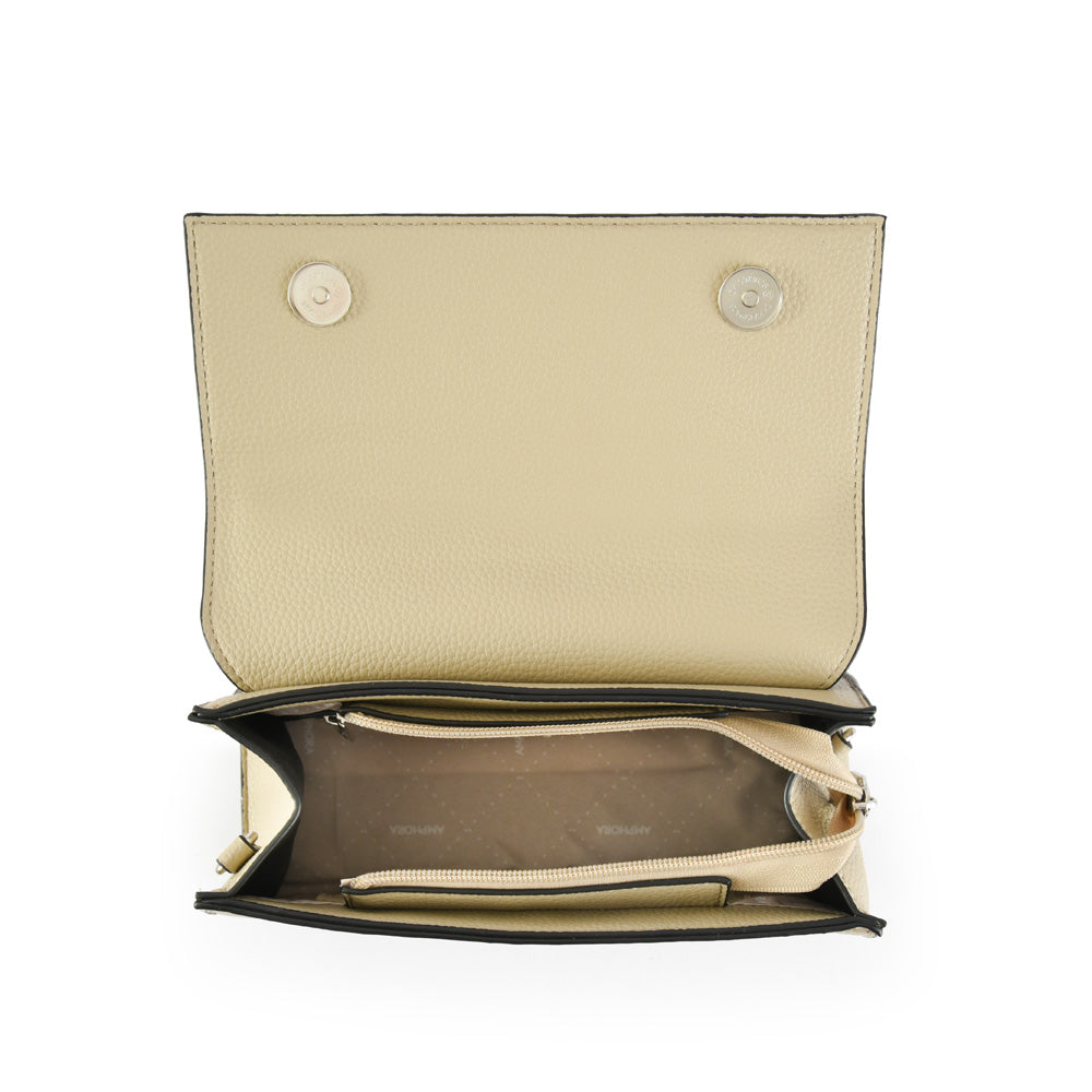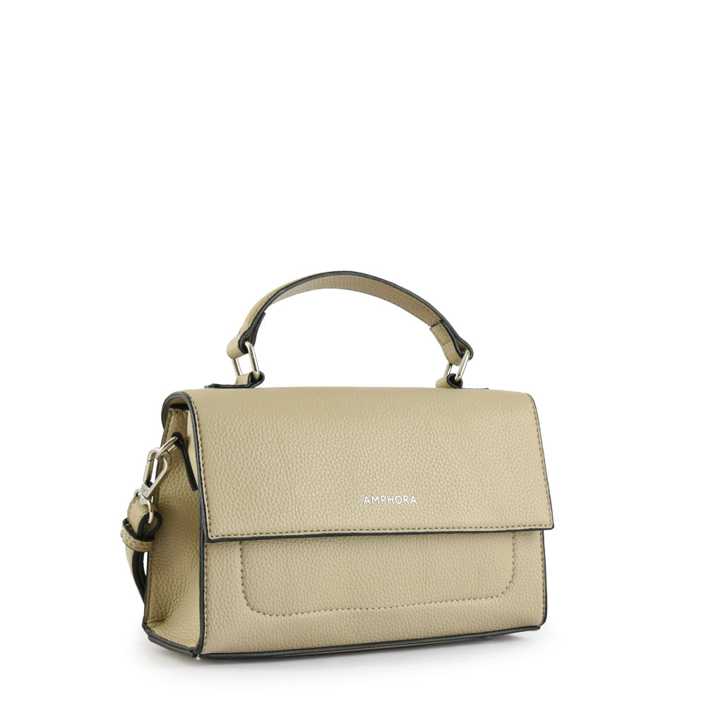 When the day calls for an accessory that steals the movie, our Solar crossbody bag with lid will be the key to your personal style. It is made with grained PU, is small in size and comes with three pockets inside and one outside. The bonus track? Its incredible sophisticated and chic design. Adapt to your Solar size and enjoy the city.