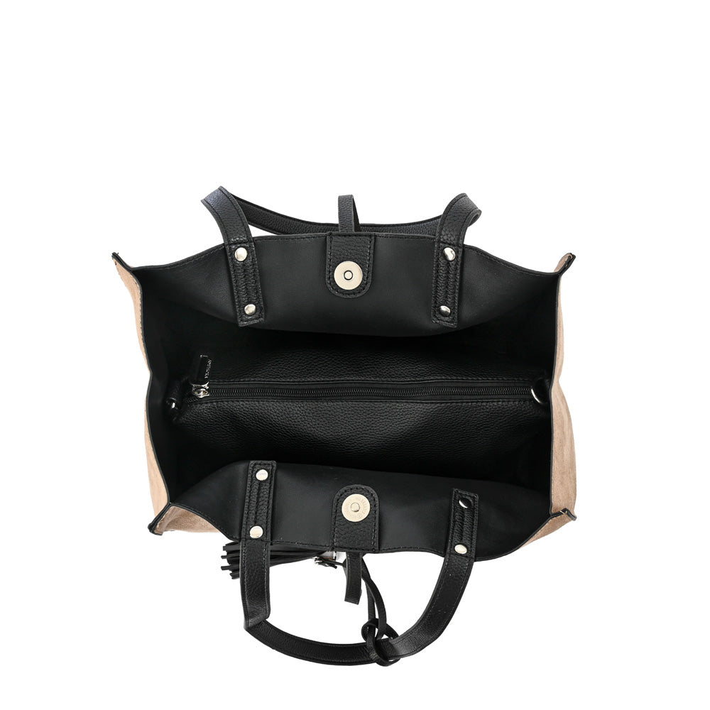Infinite coolness will give you our two-handle Allure wallet. Made of PU suede, it combines the classic with an irresistible ethnic chic touch. Its opening is through a magnetic button and to lose your essentials we add a pouch with closure. Its color, medium size and style transform it into more than a wallet, your unconditional friend.