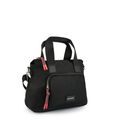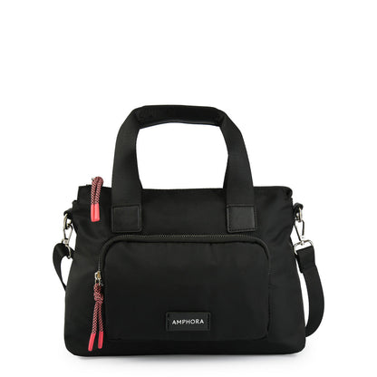 Like a classic two-handle purse but better, Melodie is one of those accessories that is almost like an extension of our body. It is made of Nylon, is medium in size and has closures and laces that gives it a chic touch. and cool It has an external compartment with closure and three internal ones. It has an adjustable strap and a handle to carry it however you want. This wallet is a fashion statement!