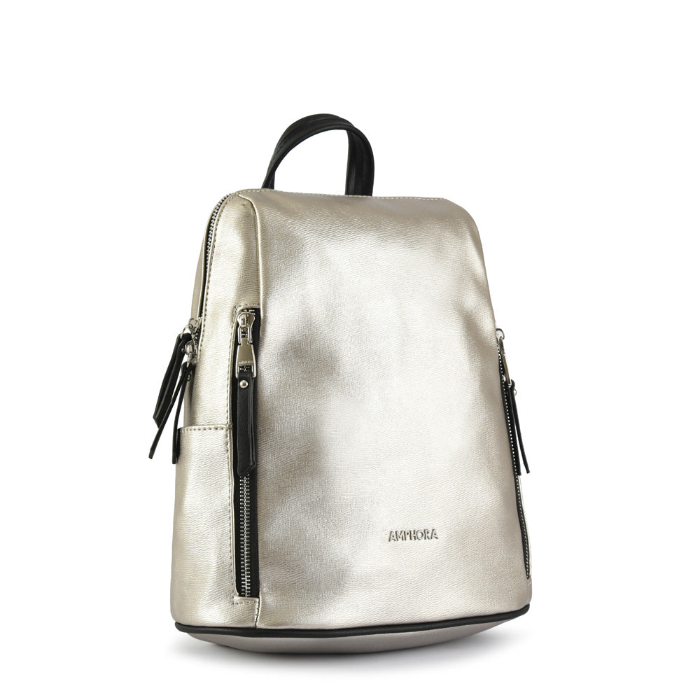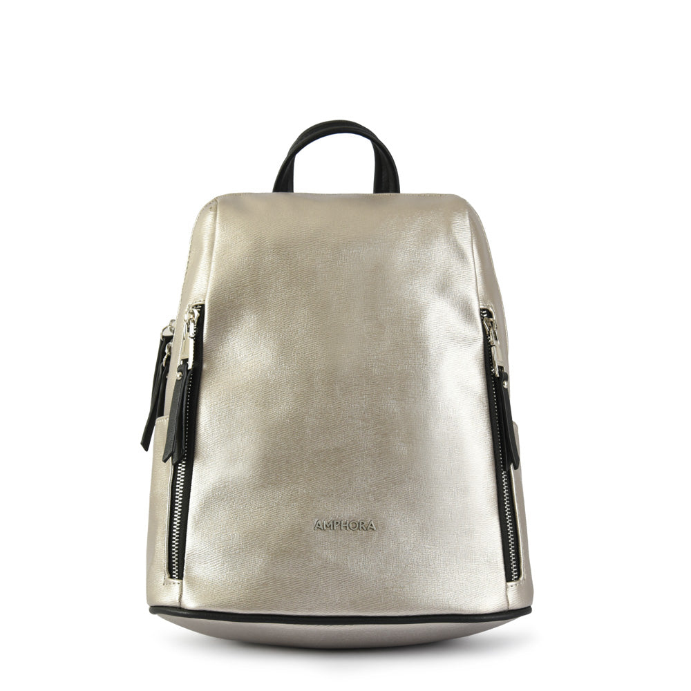 In love with Briseidita, the backpack that will become your ideal companion. Made of smooth Pu and with a metallic texture, it is that high-impact bag for your daily life. Medium in size, it has adjustable straps and has three pockets inside and two on the outside with metal closures and black details. This casual and entertaining backpack will be your best ally!